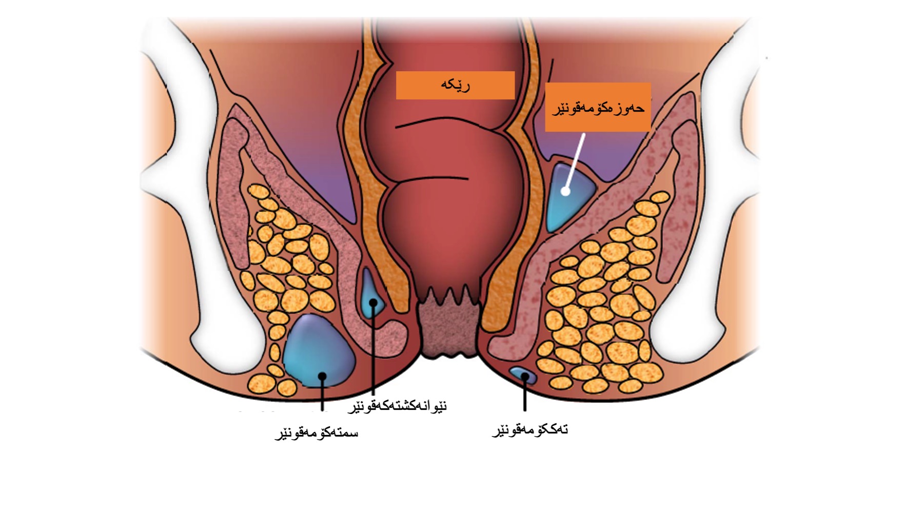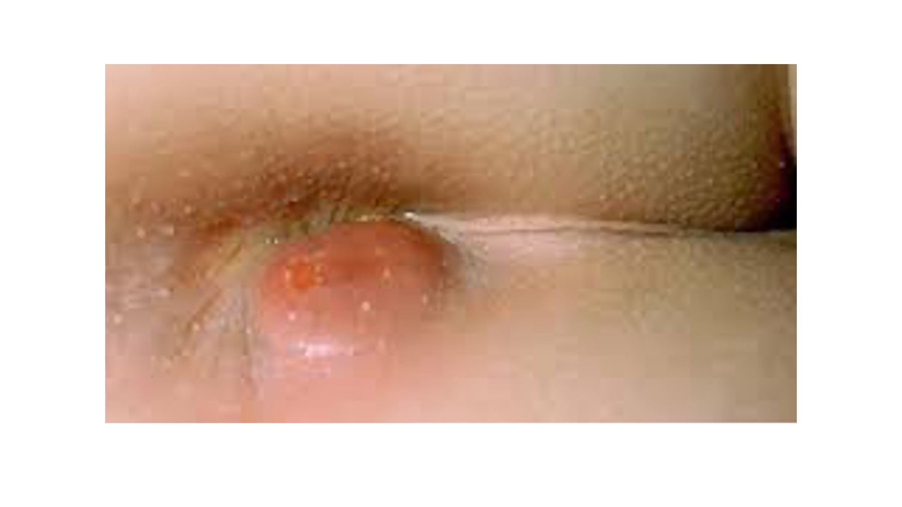 ئازار و ئەستووربوونەک لە نزیک کۆم، نەخۆشەکە ناتوانی لەسەر ئەو لایەی دابنیشی، ئازارەکی هاندەک زار لا کاتی پیسای کردن زیاد دەکا. زۆر جار تای بەرزیشی دەبی.
