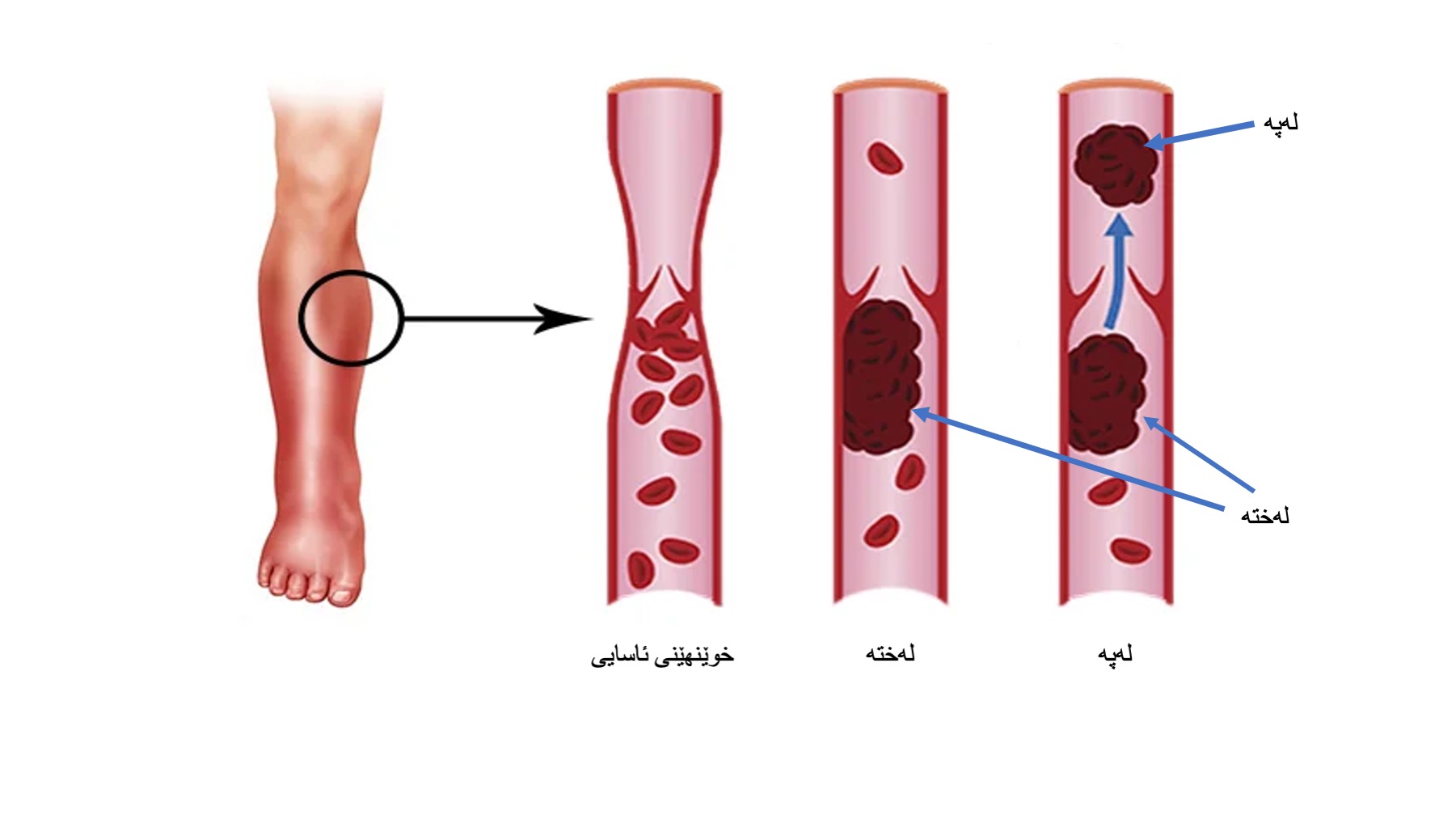 کولی پیسته، لهختی خوێنهێنهکانی بن پێسته، پهنمنای لیمفاوی، تهقینی کیسهی بهیکهر، ههوی ماسولکه، پچرانی ماسولکه، کۆنیشانی پاش لهخت.