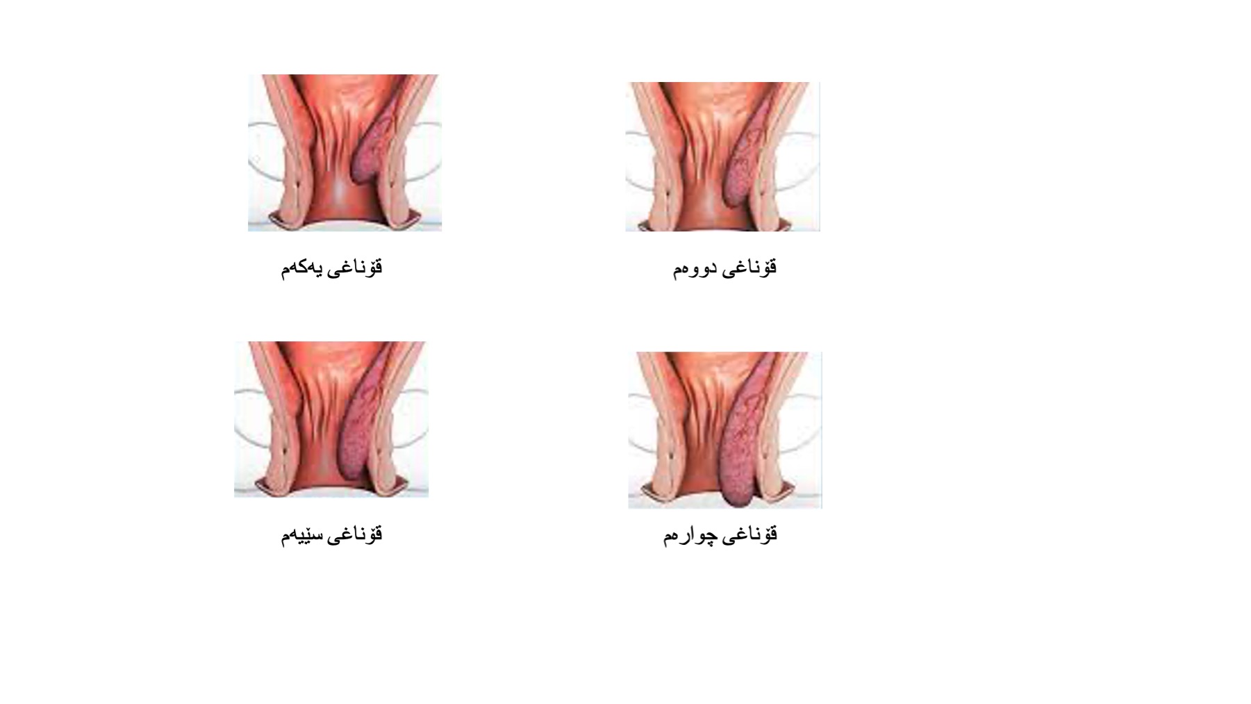 قۆناغی دووەم: ئاوساوییەکە گەورەترە و وزۆر جار لەگەڵ قەوەتکردن یان لە کاتی چوونە سەراو دێتە دەرەوە بەڵام هەر خێڕا دەچێتەوە ژوورێ.